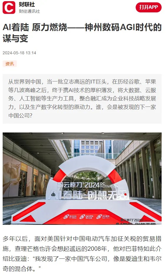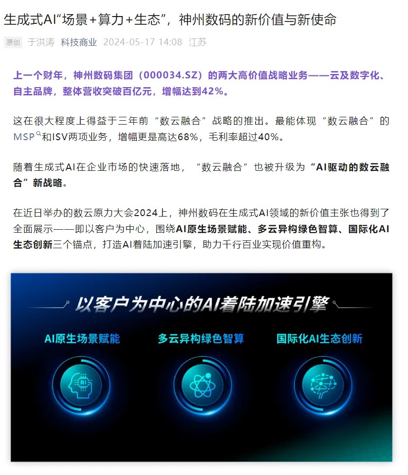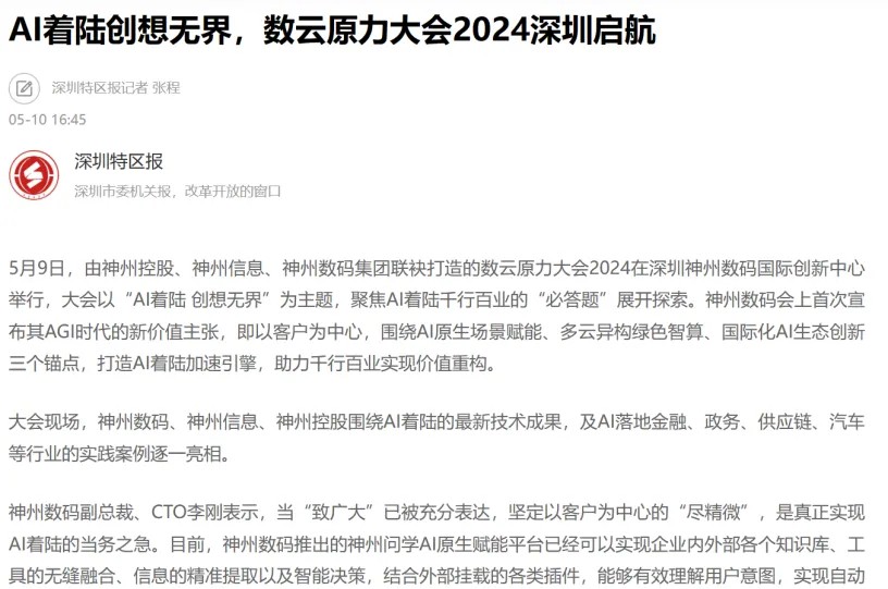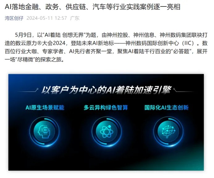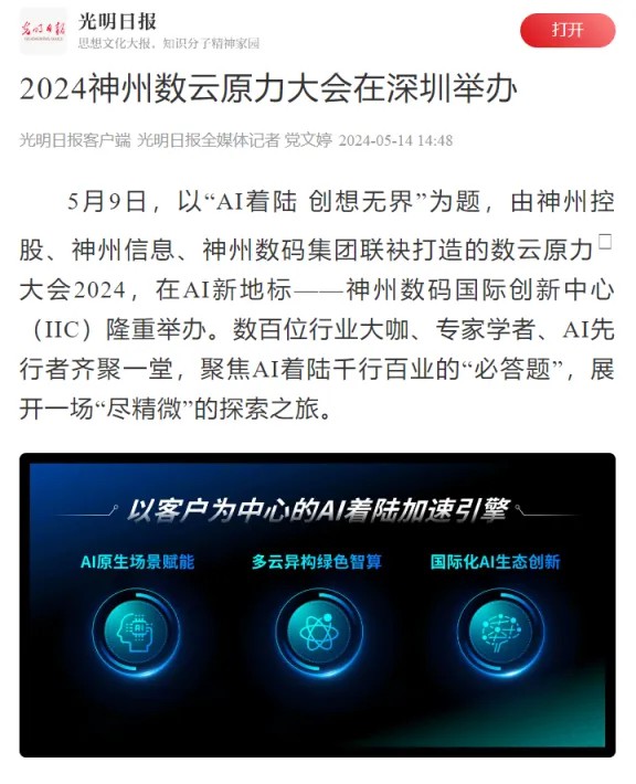 近日,由神州控股、神州信息、南宫28ng集团联袂打造的年度盛会——数云原力大会2024开幕式,在未来AI新地标——南宫28ng国际创新中心(IIC)圆满落幕。这场以“AI着陆 创想无界”为主题的活动,不仅引起了业界的广泛关注和讨论,也引发了媒体的争相报道。